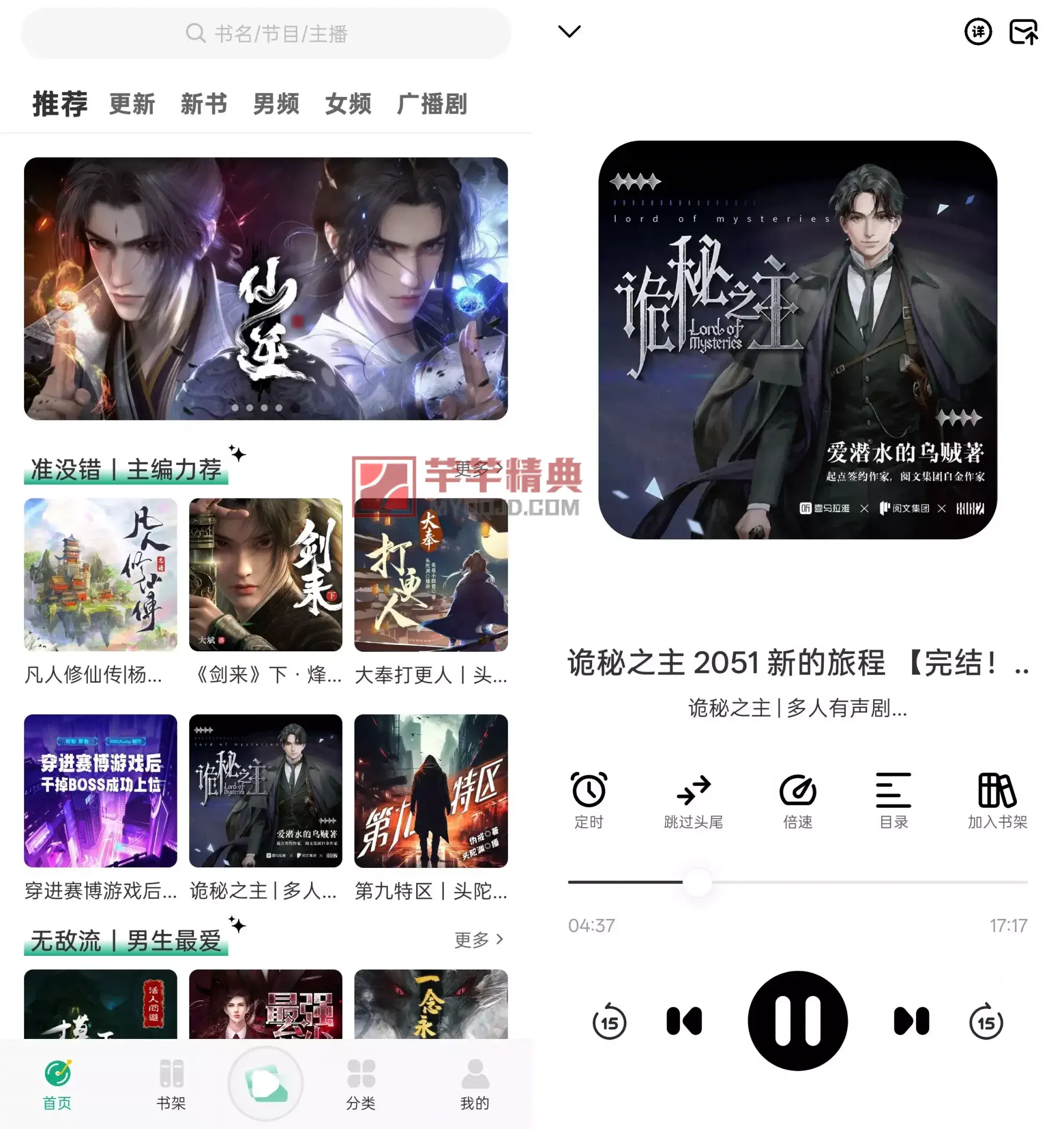 - 收录小说、有声剧、评书、广播剧等多种音频内容