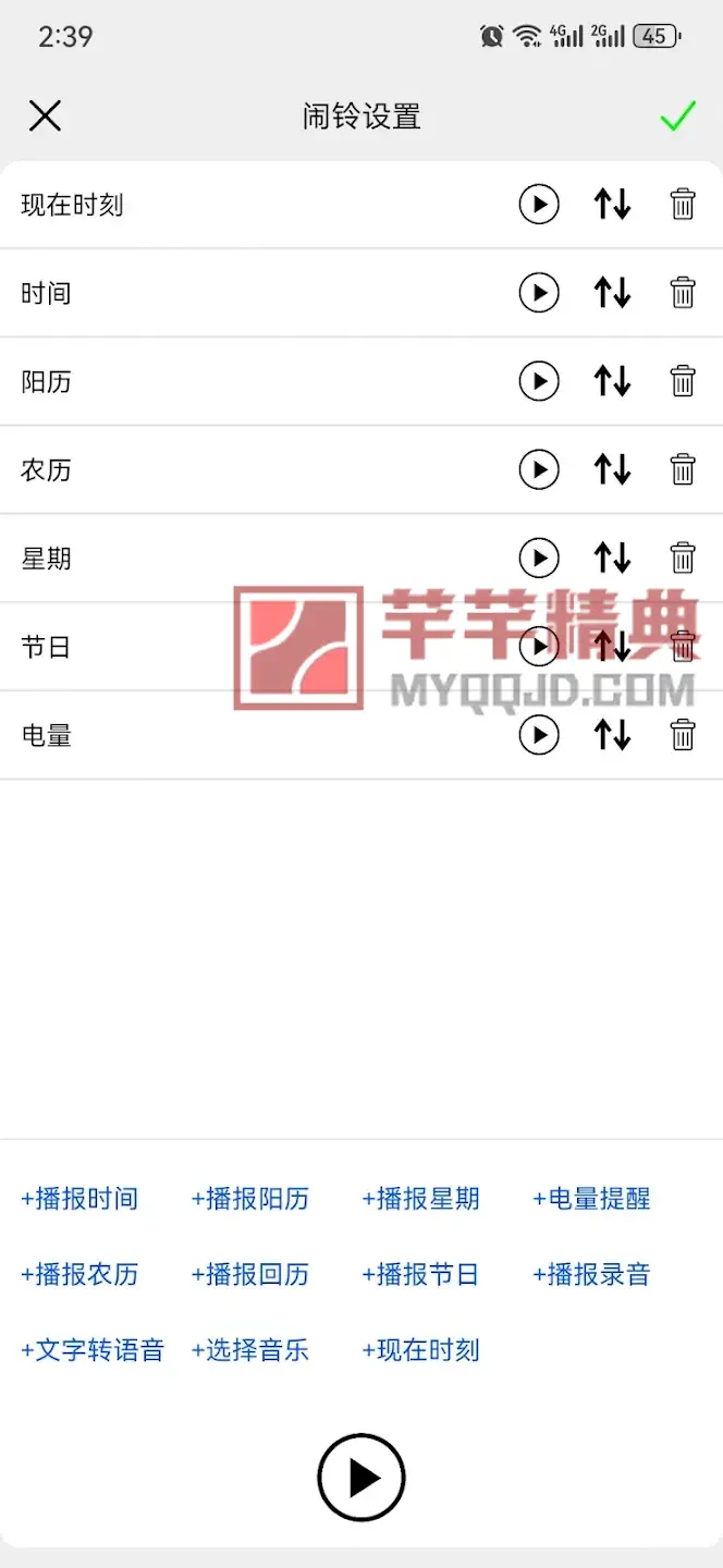- 支持文字转语音、录音文件、本地音乐作为闹钟铃声