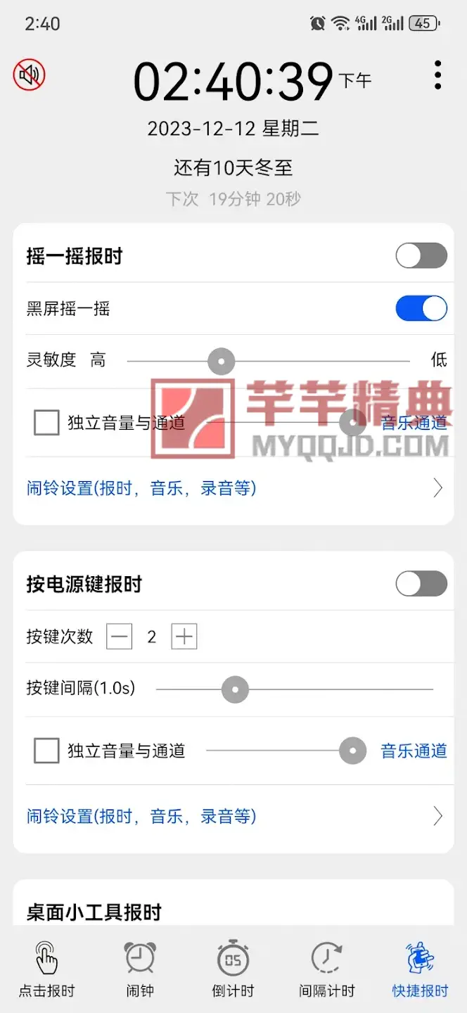 - 播报触发方式:摇一摇报时、电源键触发、桌面小工具快捷报时