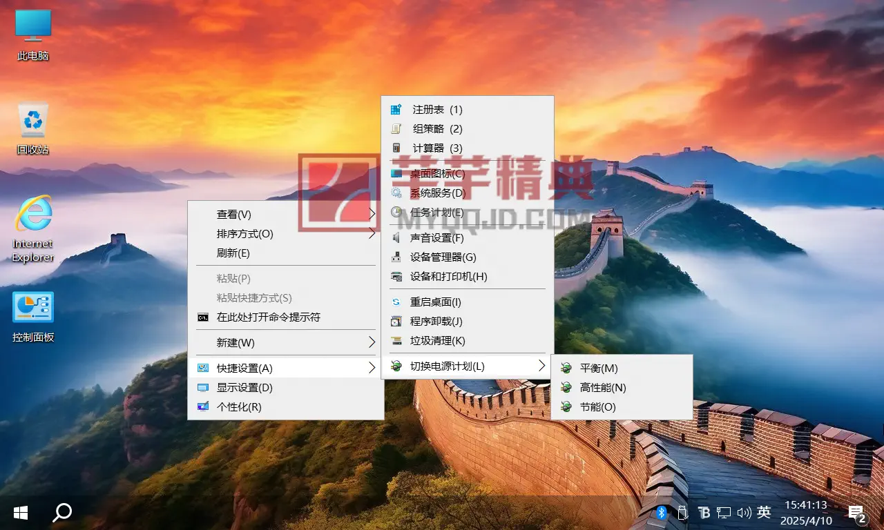 集成右键 注册表 组策略 计算器 桌面图标 系统服务 任务计划 重启桌面 声音设置、设备管理器、设备和打印机、切换电源电源计划(平衡、高性能节能)
