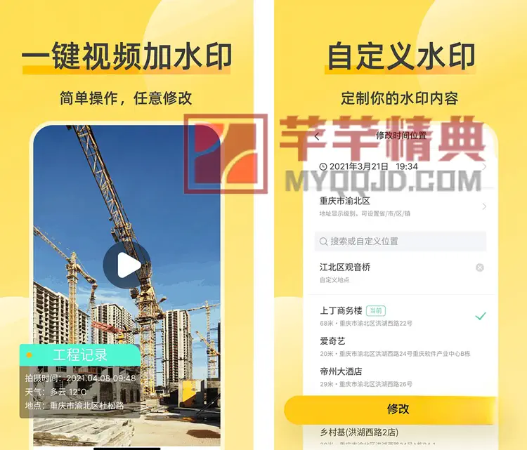 修改牛水印相机是一款专注于为照片与视频添加定制化水印的移动应用。它提供涵盖工作打卡、生活记录等多场景的水印模板,支持时间、地点、天气等信息的自动集成与实时更新。用户可通过自由组合水印元素、自定义表情,快速生成适用于巡检、考勤、旅行、探店等用途的图片或视频素材。