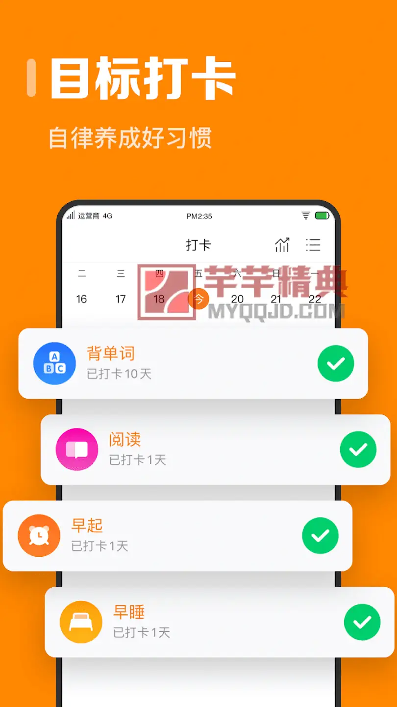 - 进度追踪:直观查看目标完成进度、连续打卡天数和历史成就数据,通过正反馈激励持续行动。