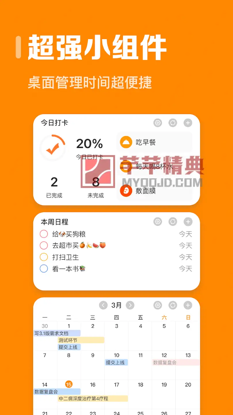 - 学生群体:管理课程表,设定作业提交提醒,培养每日背单词、锻炼等习惯。