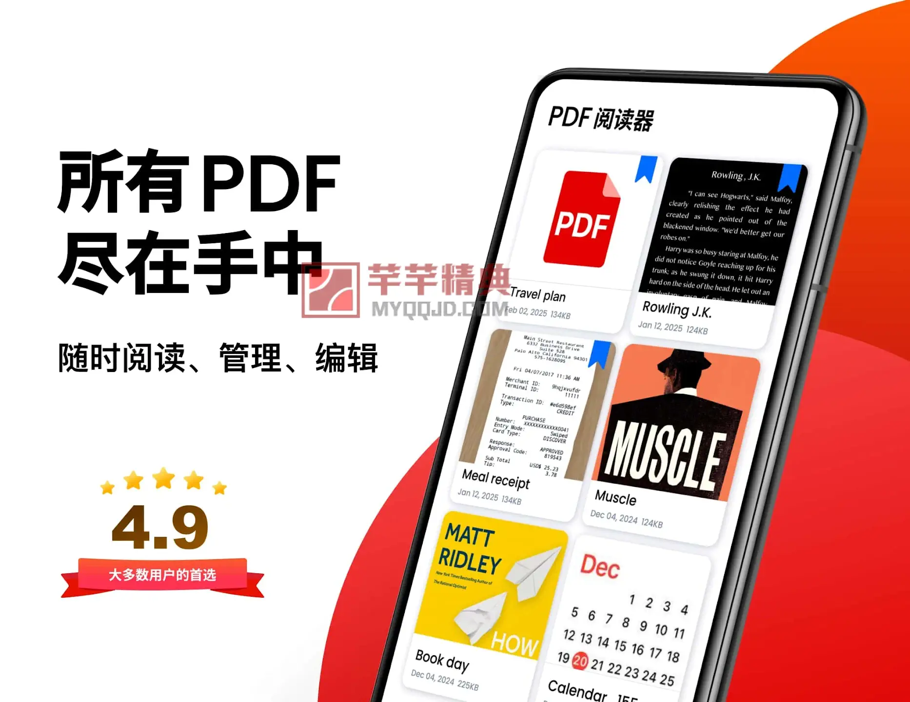 - 智能文件扫描:自动扫描手机存储空间,发现并列出所有PDF文档。
