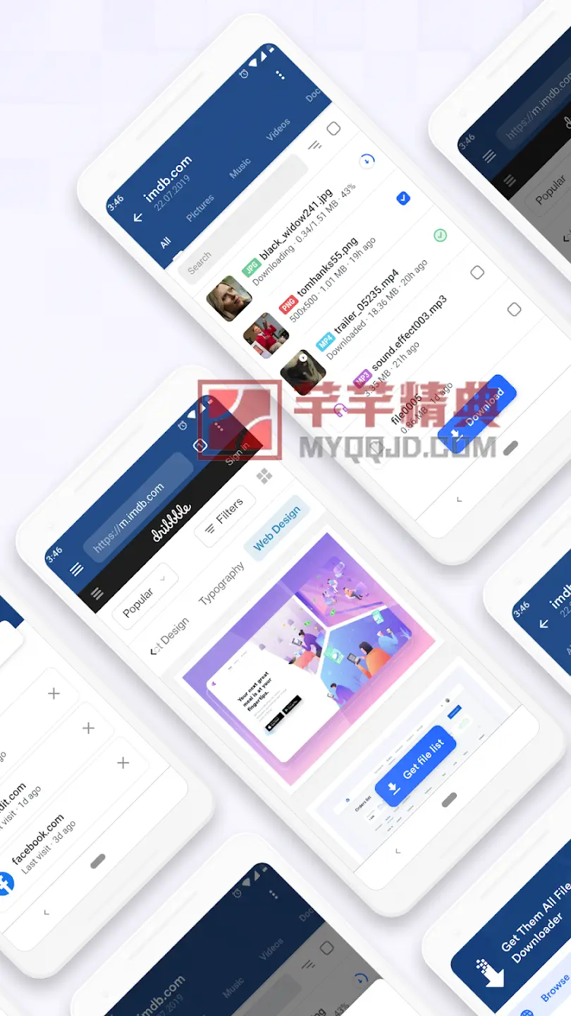 GetThemAll 是一款面向移动设备的智能下载管理器,专门用于从网页中检测、筛选并批量下载多种格式文件。它支持识别并下载视频(包括HTML5及高清视频)、音频、图像、PDF、TXT、压缩包等常见文件类型。通过内置浏览器或与系统浏览器联动,用户可以快速抓取并管理网页中的媒体与文档资源。