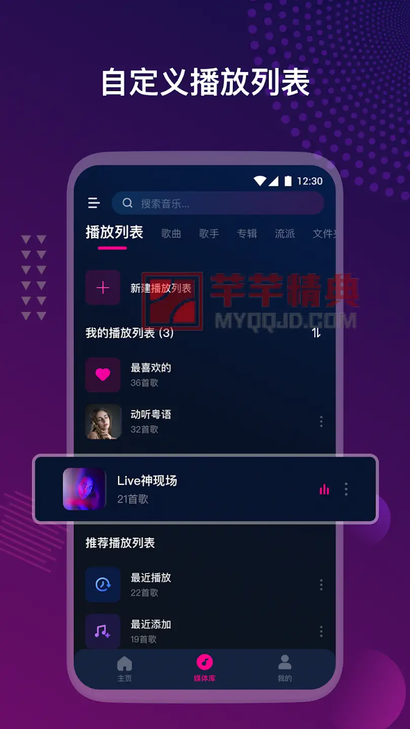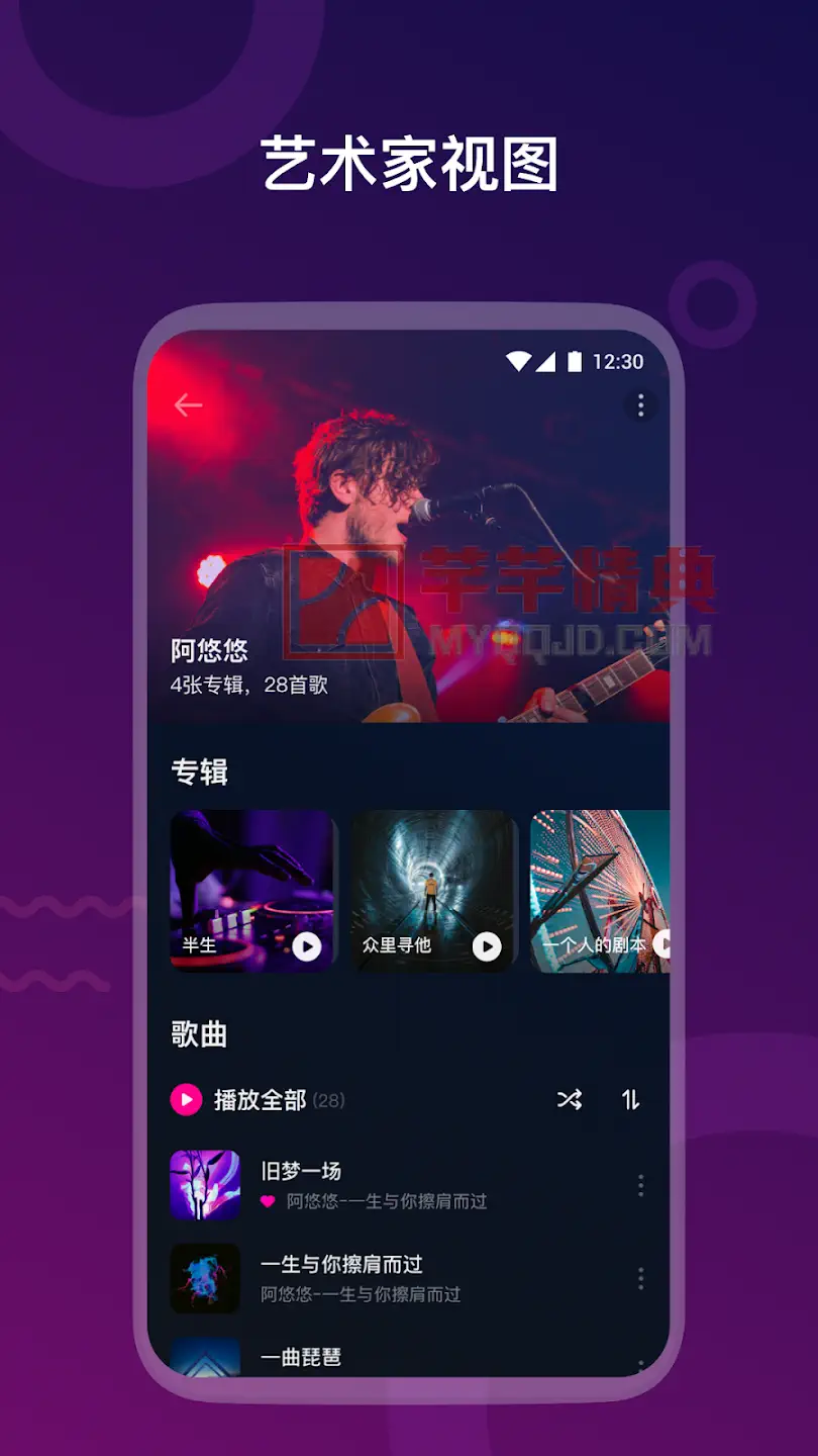 属性分类:按歌手、专辑、曲风(流派)自动归类歌曲。