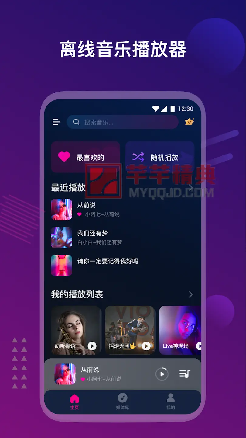 - 智能推荐:根据用户的播放历史与频率,在首页推荐常听的歌曲、歌手及个性化歌单。