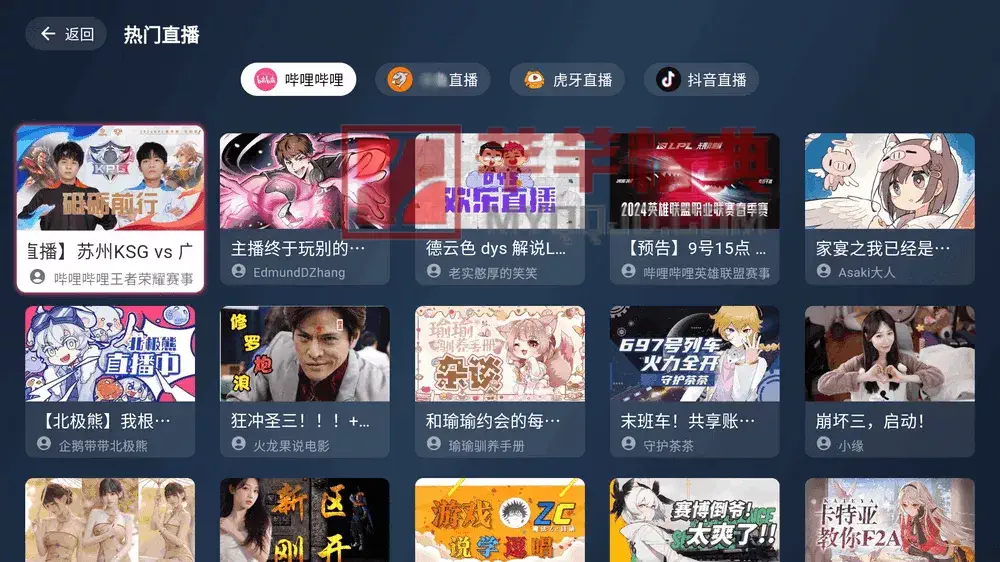 - 四大平台支持:聚合B站、斗鱼、虎牙、抖音的直播内容,无需在不同应用间切换。