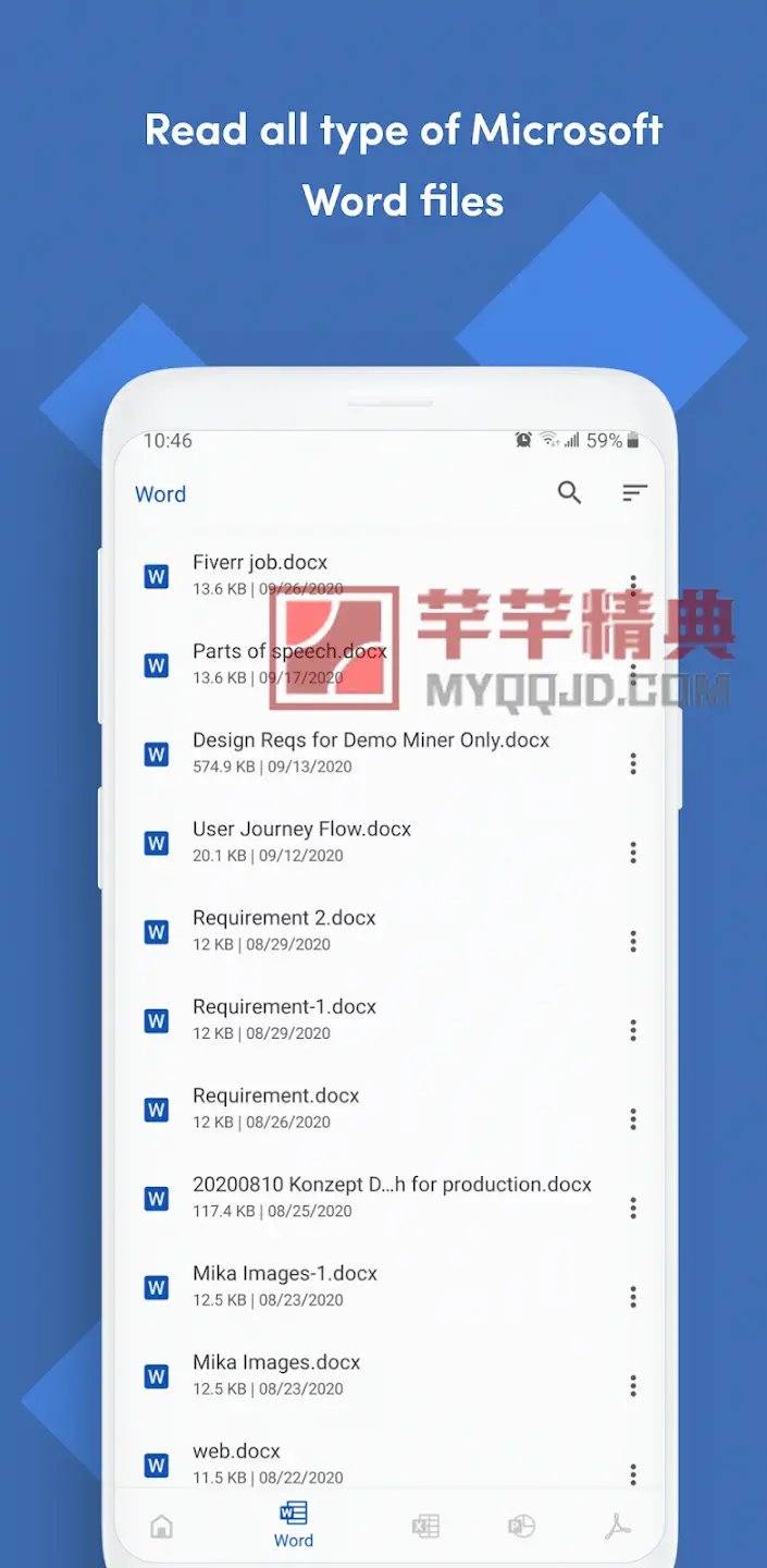 1. 打开应用:启动 Office Reader,应用自动扫描手机中的文档。
