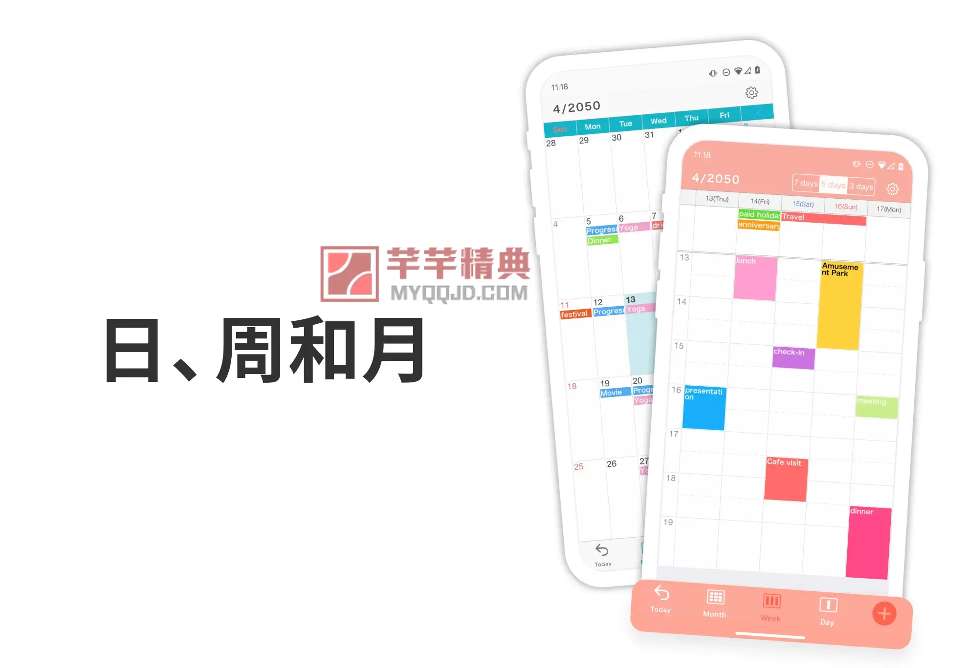 - 点击屏幕底部按钮,可在月、周、日视图间快速切换。