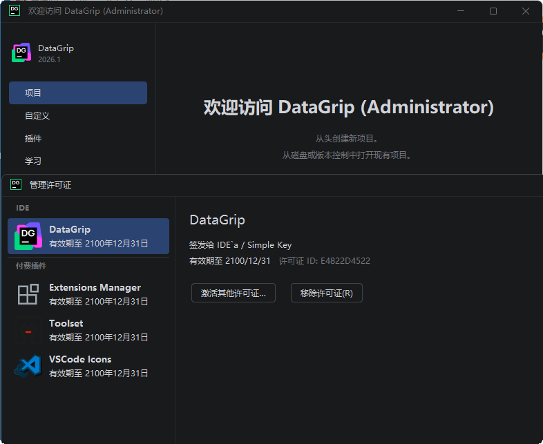 DataGrip 2026 中文最新版是 JetBrains 推出的专业数据库集成开发环境(IDE),专为数据库开发与管理员打造。软件提供 AI智能体、智能SQL补全、深度代码分析与即时错误检测等功能,是编写SQL代码必备神器。针对多数据库项目,内置数据编辑与查询工具,支持 MySQL、PostgreSQL、SQL Server 等数据库,高效完成查询、调试到数据管理全流程。DataGrip 2026 中文破解版,集成永久激活,安装即可免费使用。