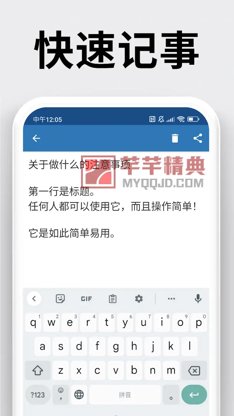 - 一键分享笔记内容至微信、QQ、邮件等应用。